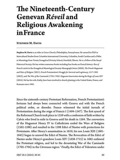 “The Nineteenth-Century Genevan Réveil and Religious Awakening in France.” The Southern Baptist Journal of Theology 28/3 (Fall 2024).